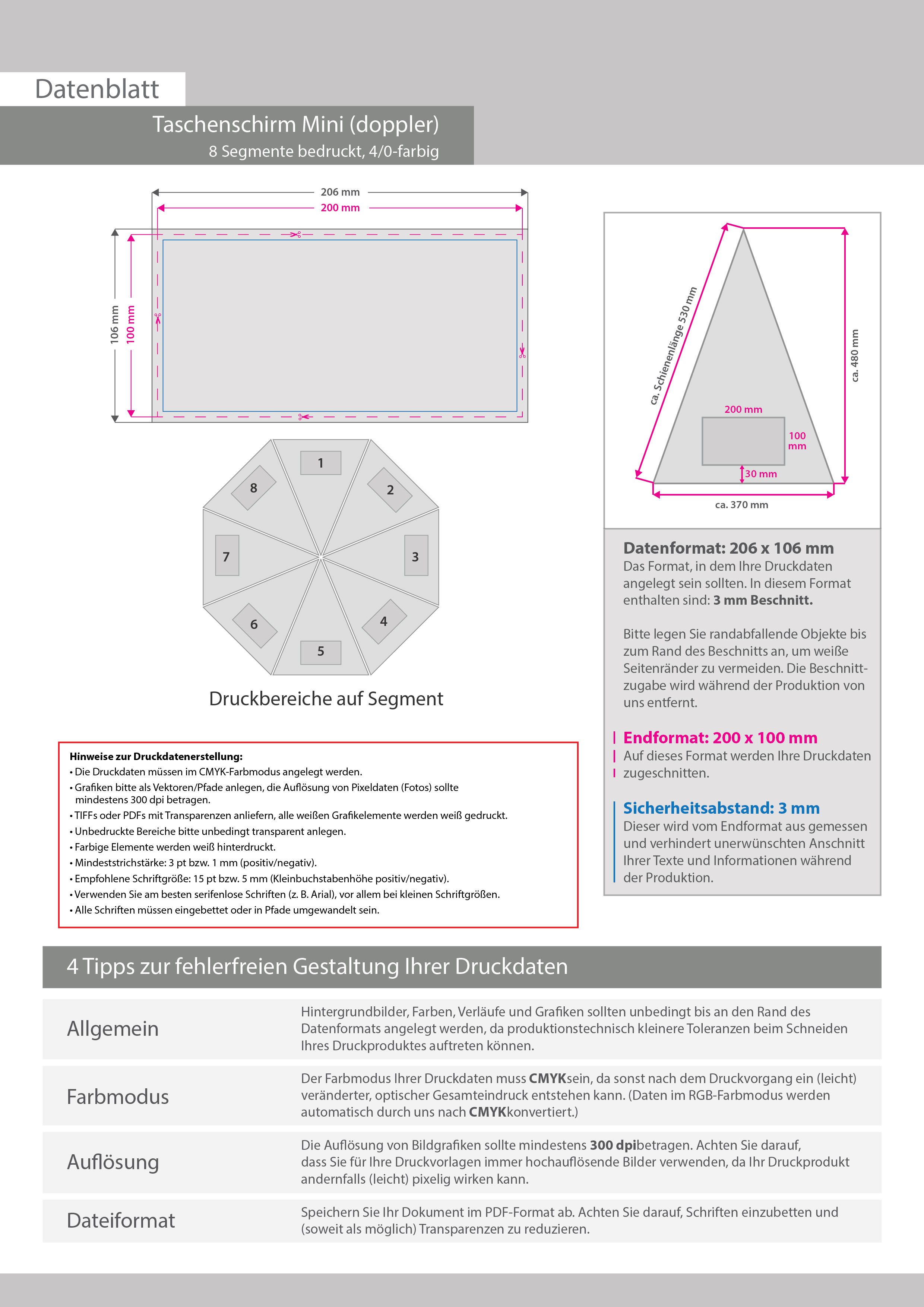 Taschenschirm Mini (doppler), 4/0-farbig, 8 Segmente bedruckt