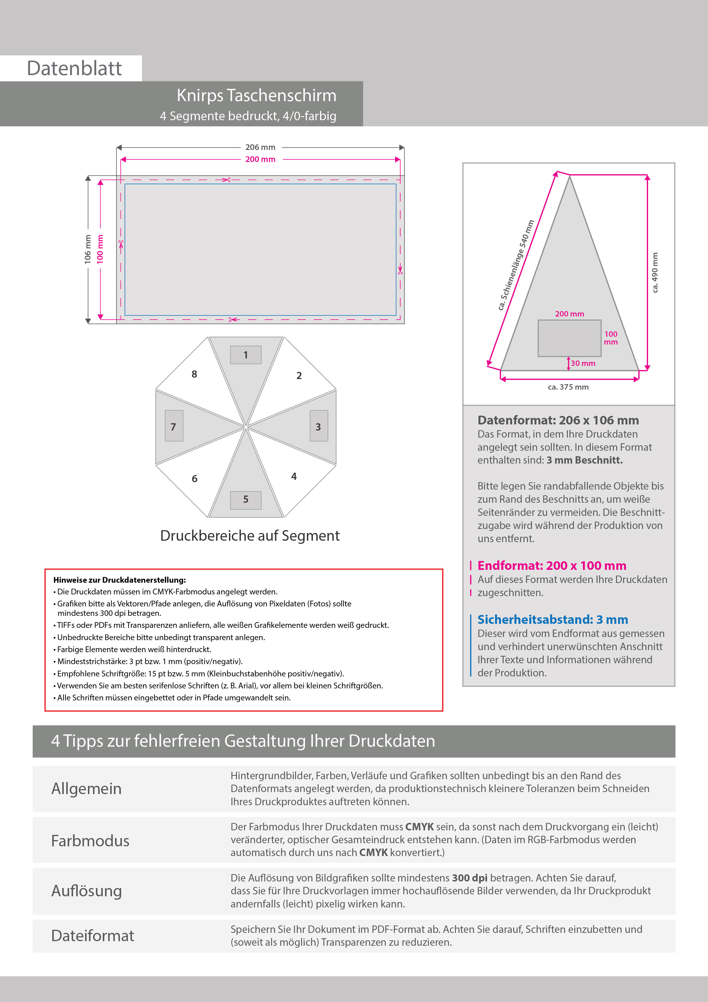 Knirps Taschenschirm, 4/0-farbig, 4 Segmente bedruckt