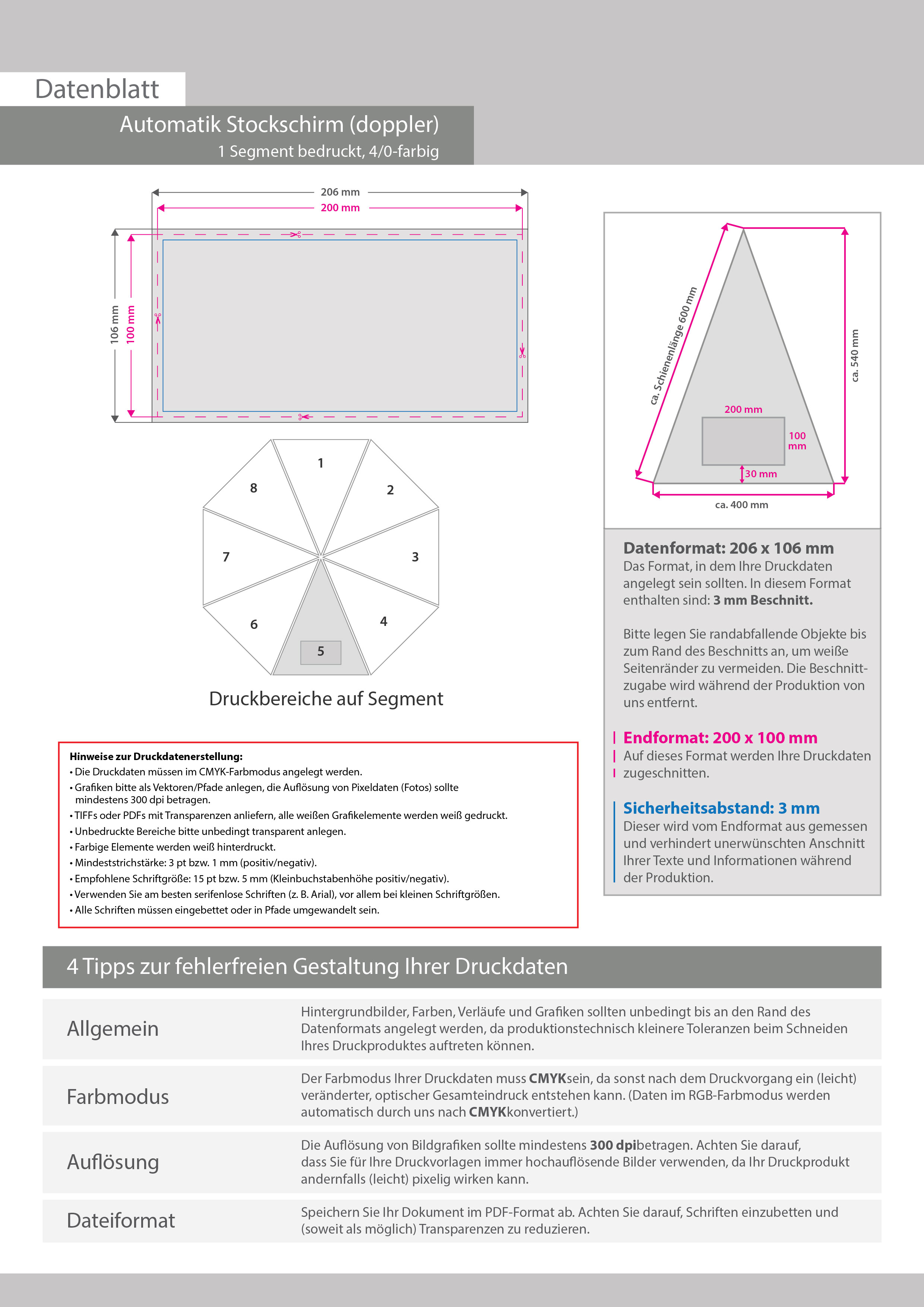 Automatik Stockschirm (doppler), 4/0-farbig, 1 Segment bedruckt