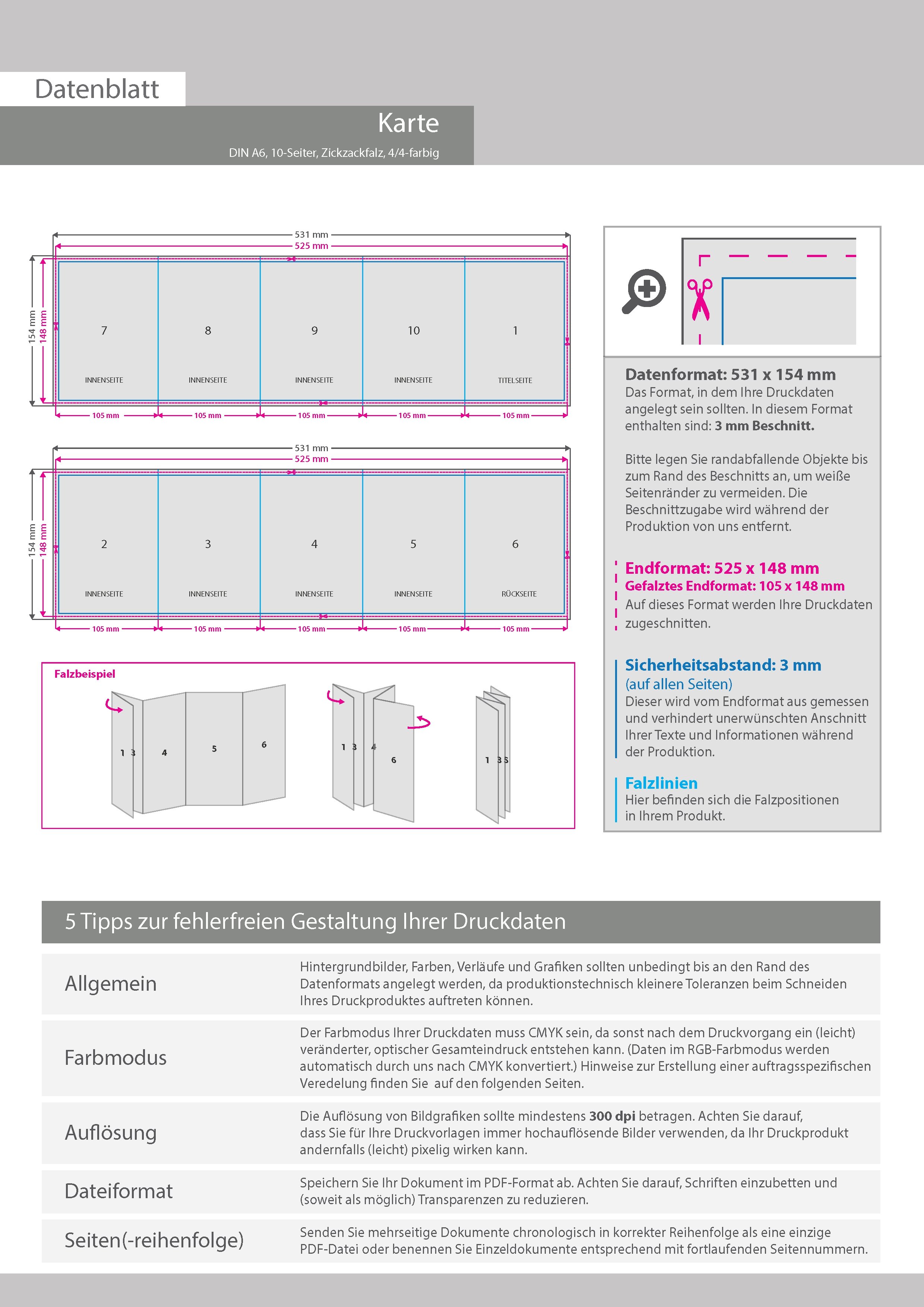 Geburtstagskarte, gefalzt auf DIN A6, vertikaler Zickzackfalz, 10-seitig